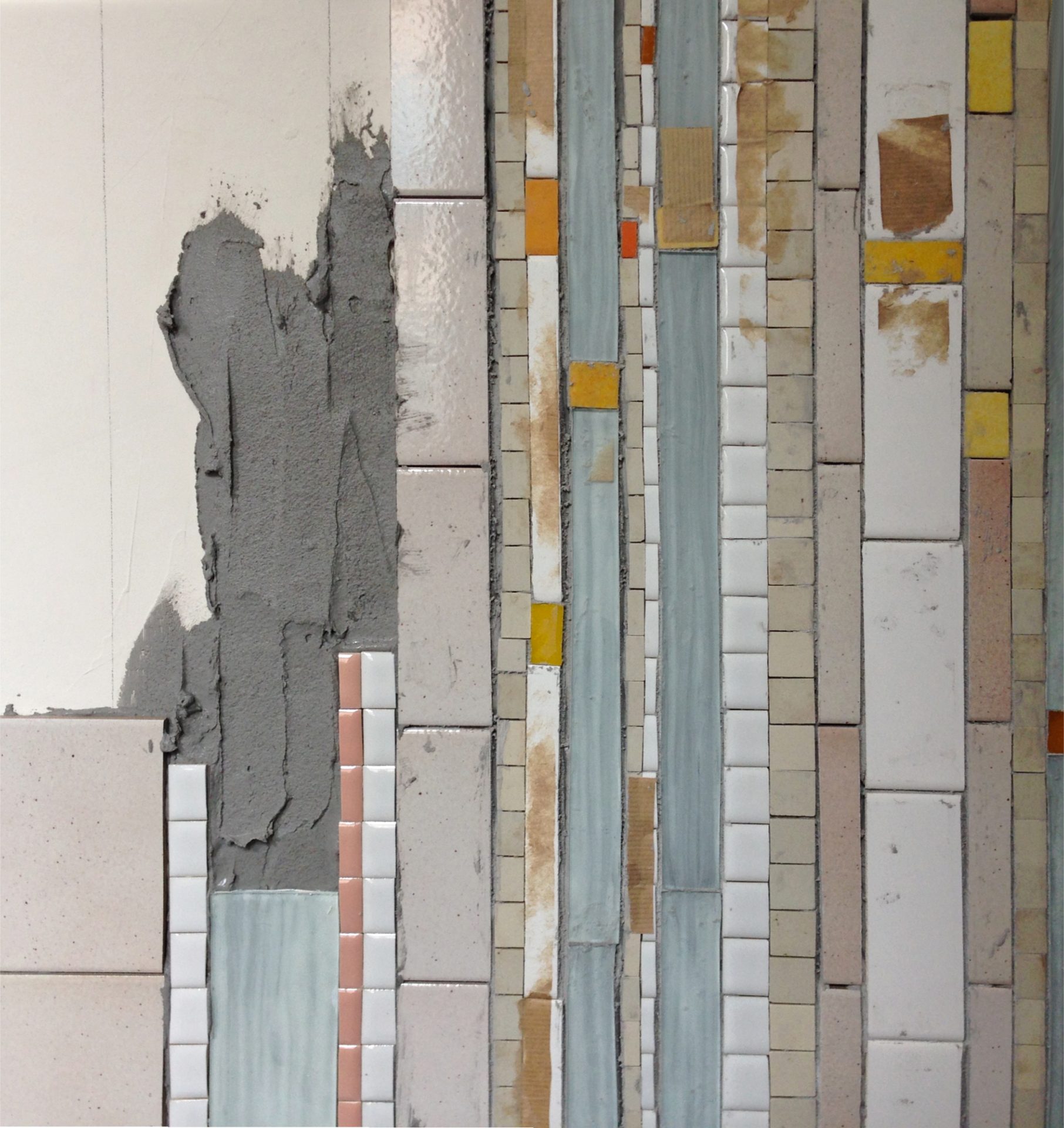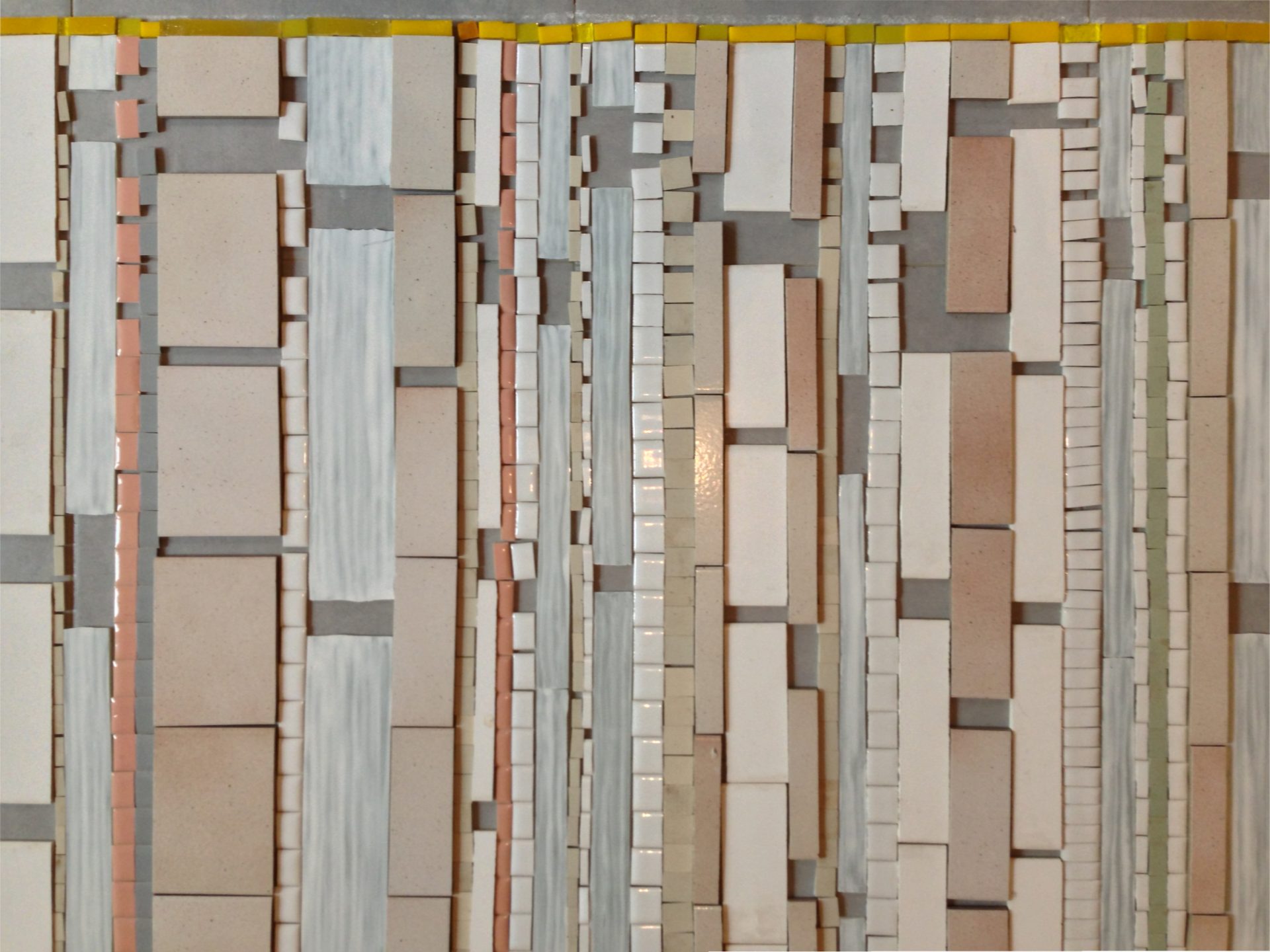 carrelage, faïence, verre et pâte de verre, 70×120 cm. Coût total: 1800€